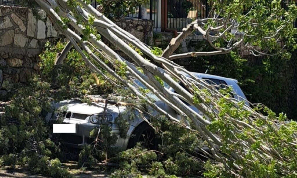 Ρόδος ΤΩΡΑ – Τεράστιο δέντρο καταπλάκωσε αυτοκίνητα