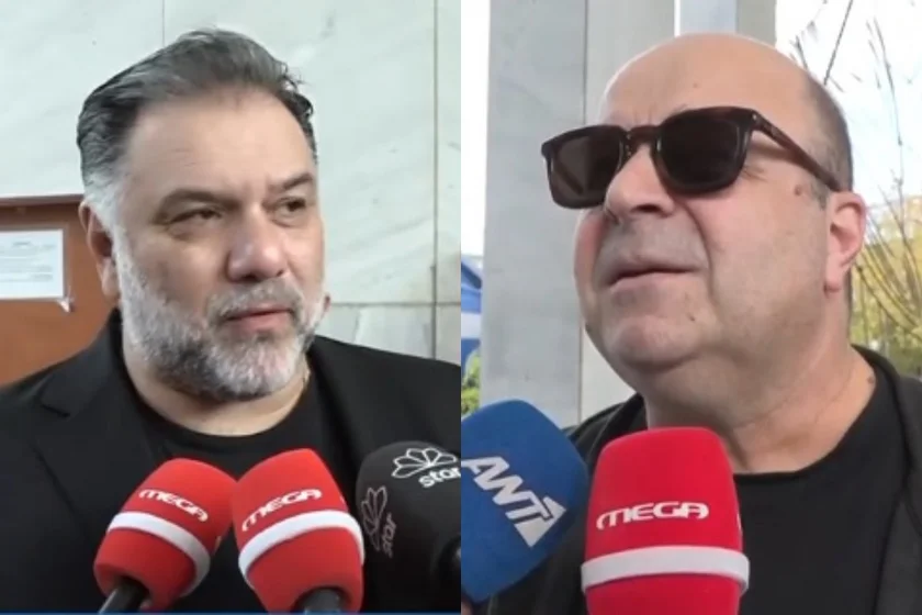 Γρηγόρης Αρναούτογλου και Μάρκος Σεφερλής – Συγκινημένοι στην κηδεία του Δημήτρη Σούρα