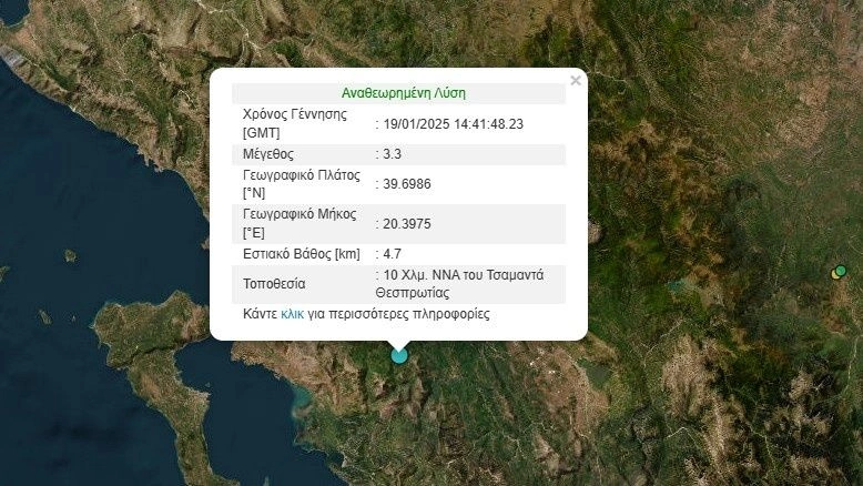 Σεισμός 3,3 Ρίχτερ στον Τσαμαντά Θεσπρωτίας