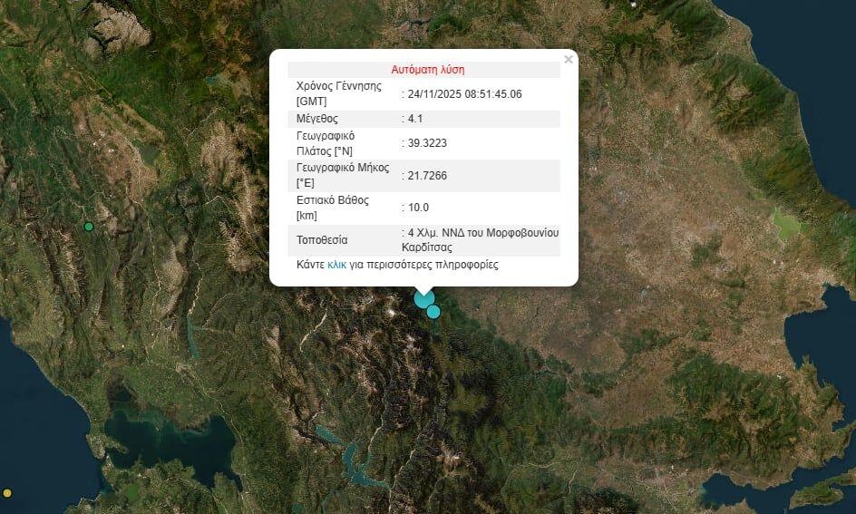 Σεισμός 4,1 Ρίχτερ στην Καρδίτσα…