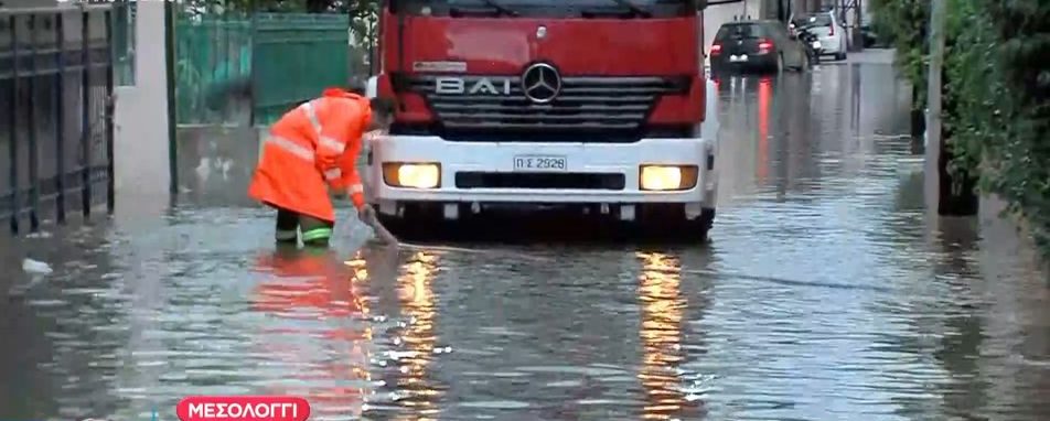 Ένα… ποτάμι το Μεσολόγγι – Πλημμύρισαν φρεάτια και δρόμοι. Κλειστά σήμερα τα σχολεία
