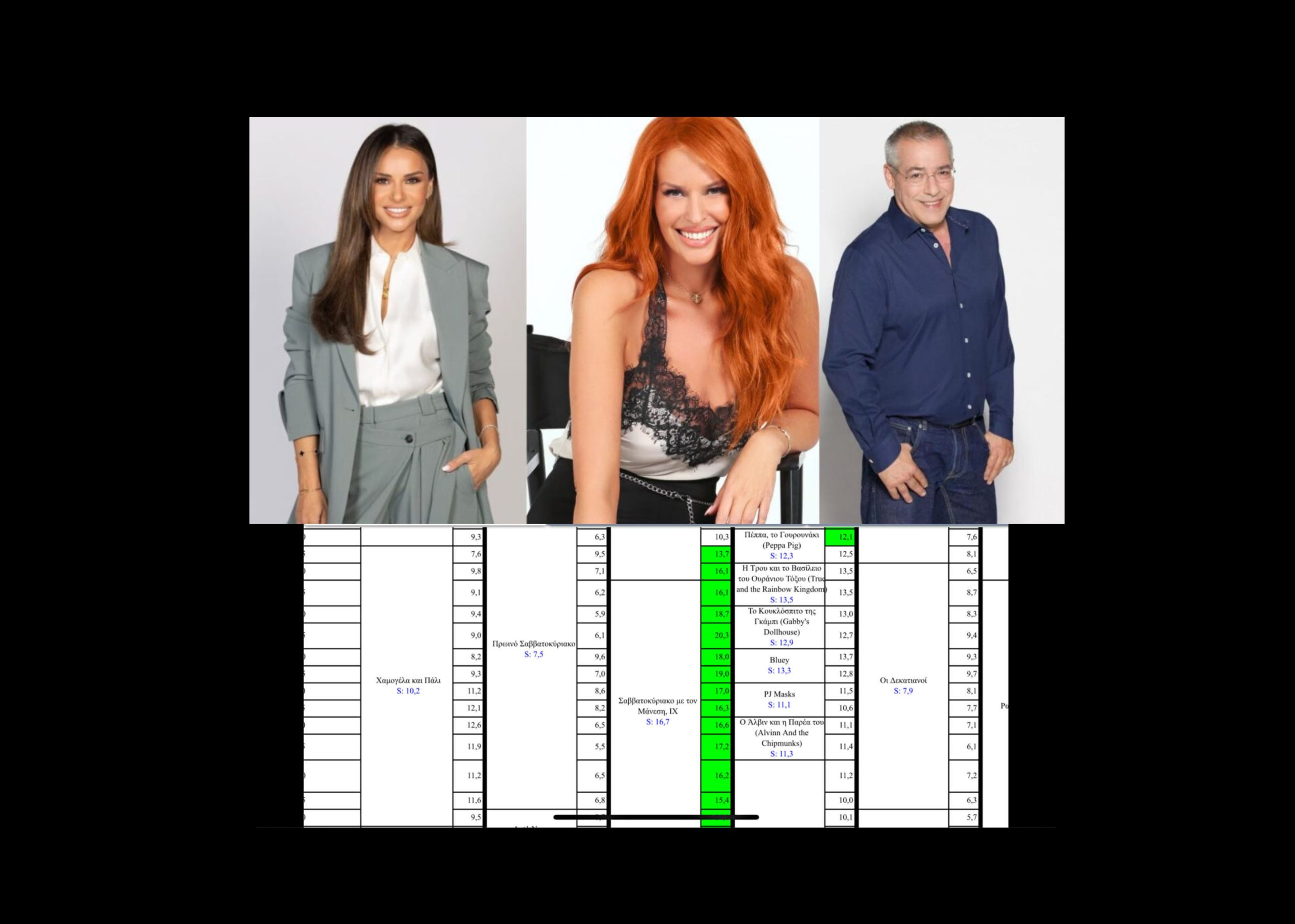 Τηλεθέαση – Πρώτη η Χρηστίδου και άνοδος της Τσολάκη χωρίς τον Κωστόπουλο