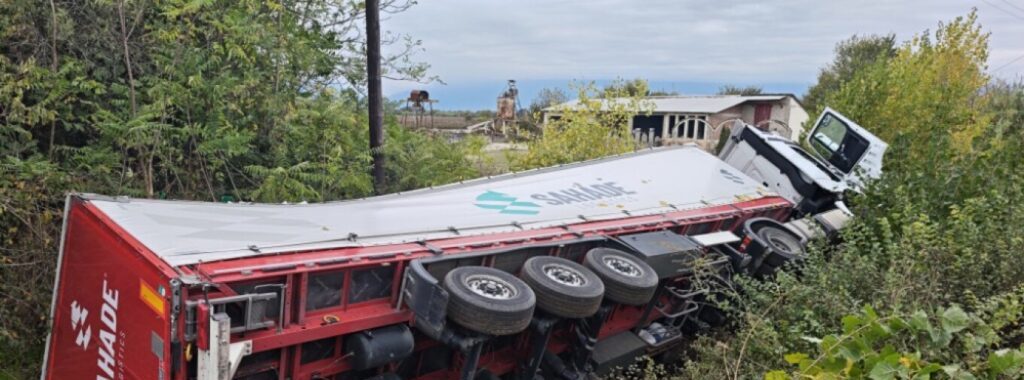 Νταλίκα εξετράπη της πορείας της στην Ε.Ο. Τρικάλων – Καρδίτσας και κατέληξε σε χαντάκι (βίντεο)