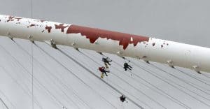 Κρέμονται στα 62 μέτρα για το στέγαστρο του ΟΑΚΑ – Εικόνες που κόβουν την ανάσα