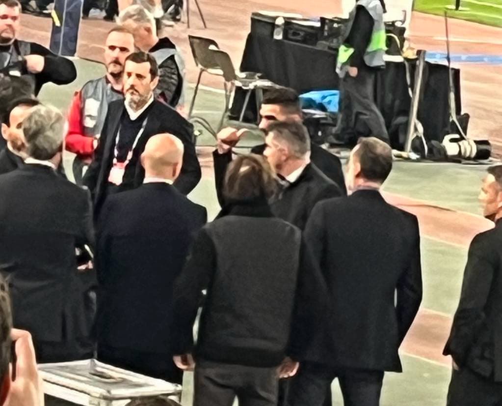 Λίγο πριν την έναρξη του αγώνα οι παλαίμαχοι ποδοσφαιριστές της Εθνικής που κατέκτησαν το…