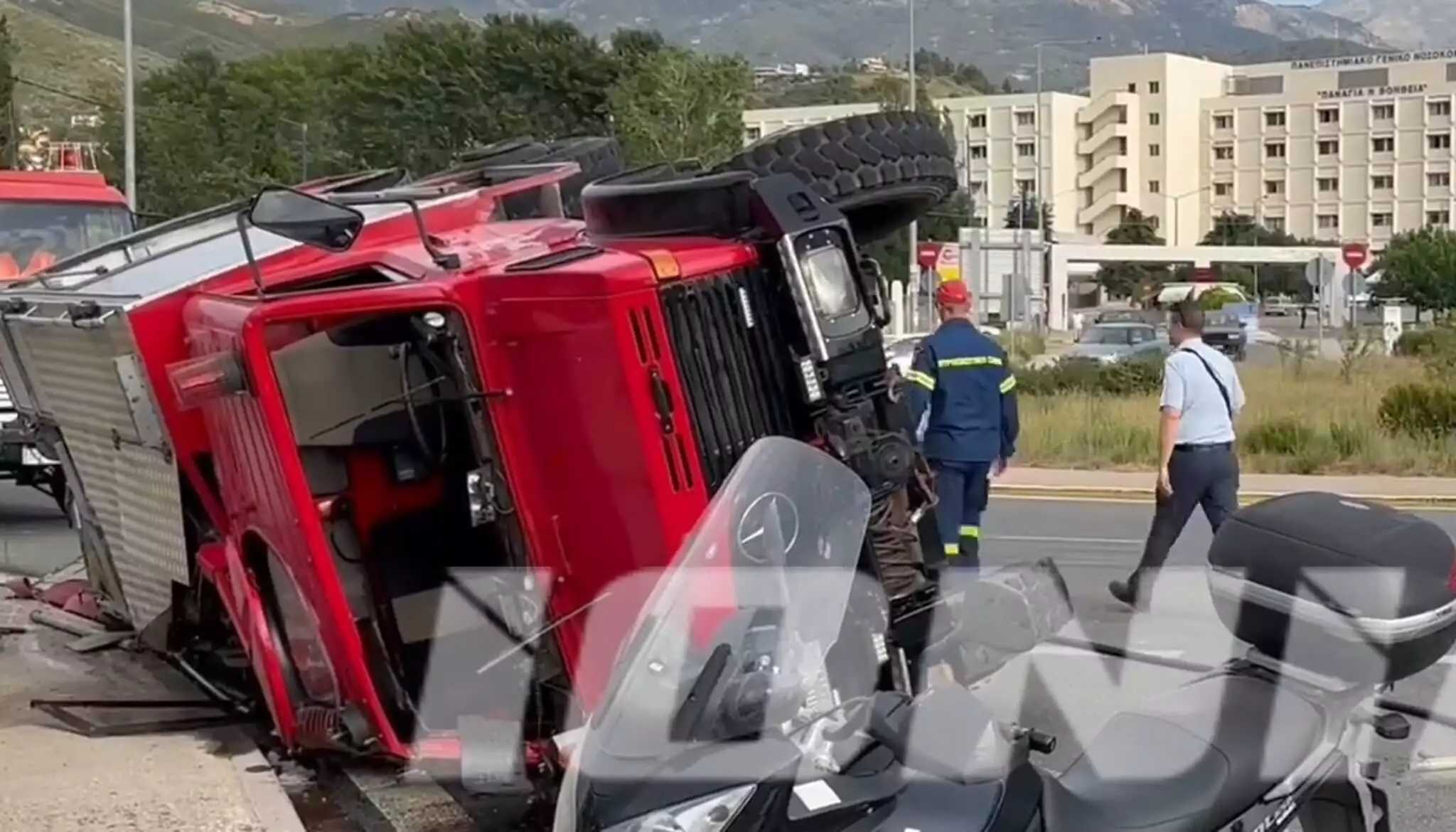 Τροχαίο στο Ρίο με πυροσβεστικό όχημα να ανατρέπεται σε κυκλικό κόμβο. Ένας πυροσβέστης τραυματίστηκε…