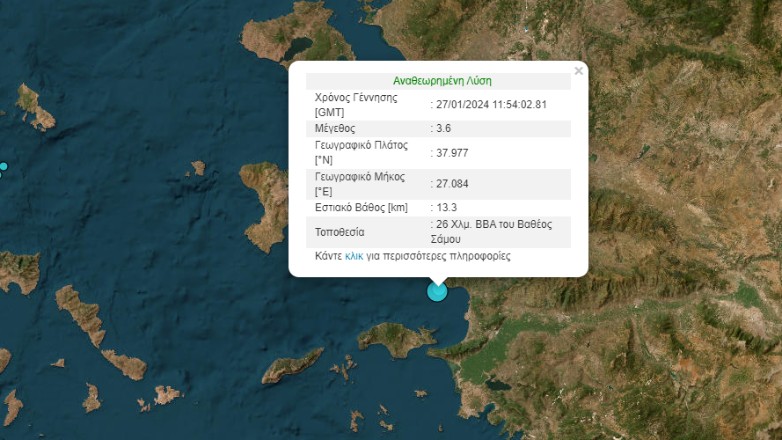 Νέος σεισμός 3,6 Ρίχτερ στα ανοιχτά της Σάμου