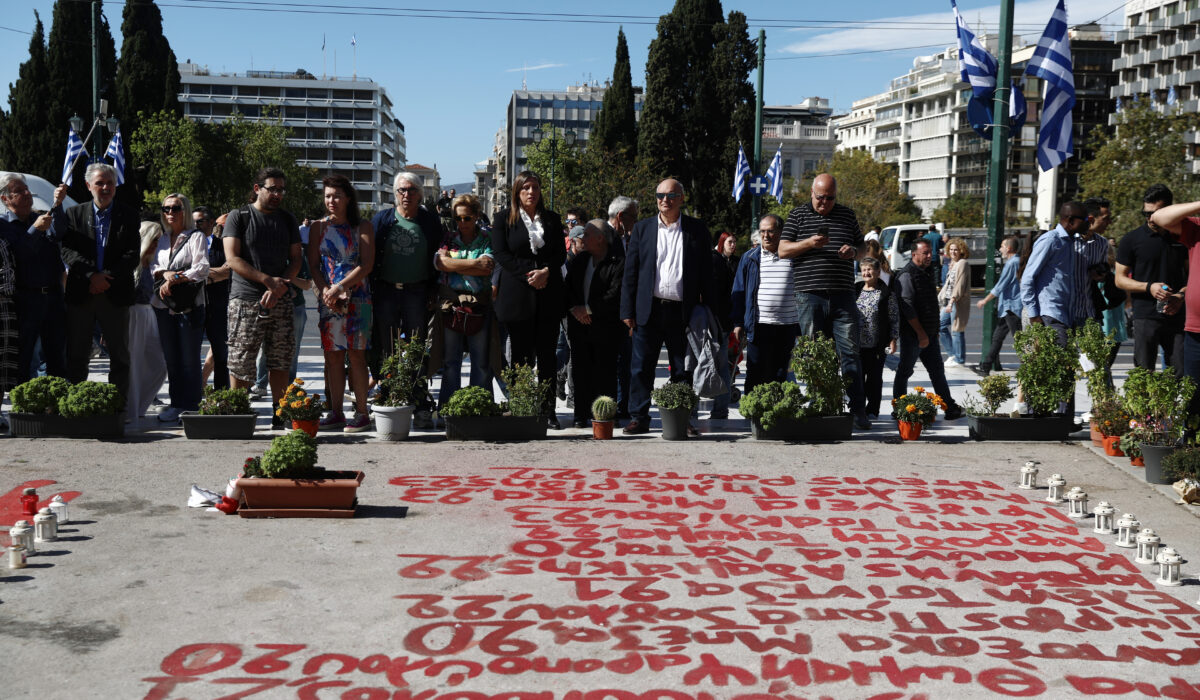 Λουλούδια στη μνήμη των θυμάτων των Τεμπών – Παρούσα και η Κωνσταντοπούλου