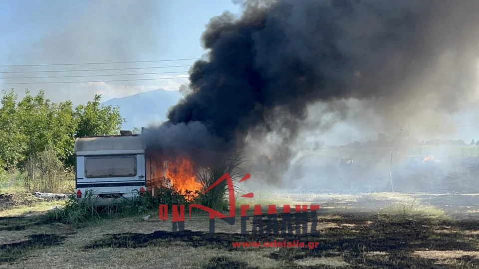 Φωτιά σε χωράφια στην Κατερίνη – Κάηκε τροχόσπιτο