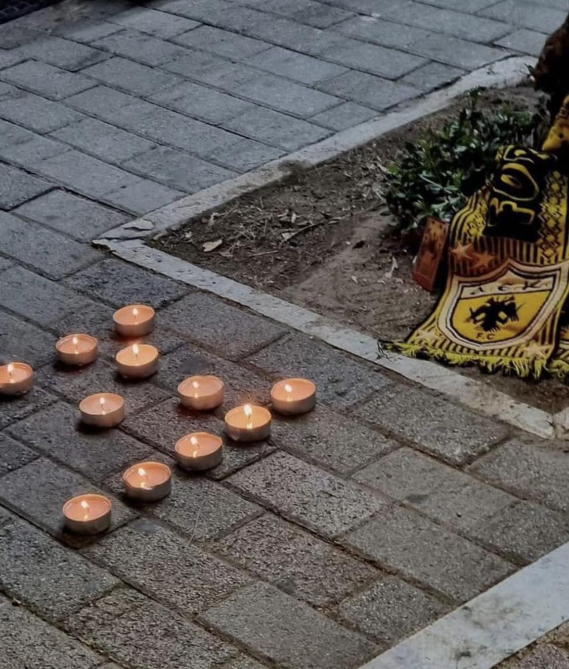 Φίλαθλοι της ΑΕΚ αποχαιρετούν τον Μιχάλη – Το παλικάρι που έπεσε νεκρό στα επεισόδια, με κεριά και κασκόλ