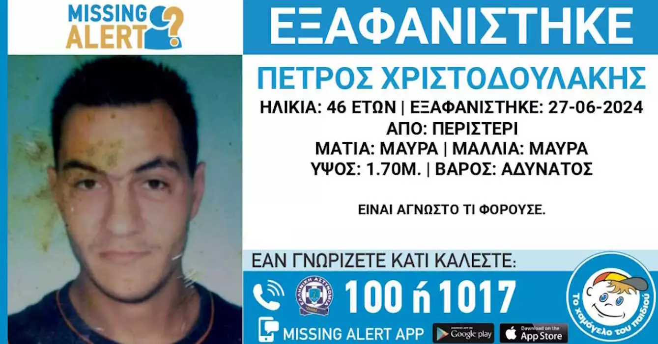 Την εξαφάνιση του Πέτρου Χριστοδουλάκη 46 ετών γνωστοποίησε το «Χαμόγελο του Παιδιού» το πρωί…