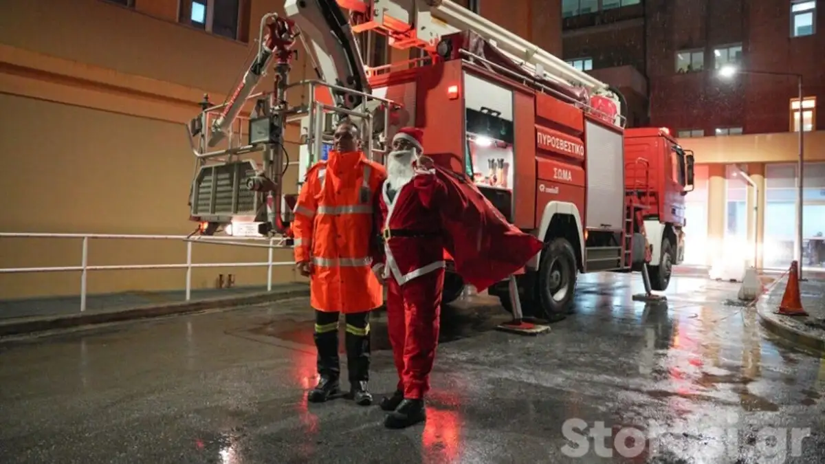 Μυτιλήνη ΤΩΡΑ – Πυροσβέστης ντυμένος Άγιος Βασίλης έδωσε δώρα στα παιδιά του νοσοκομείου