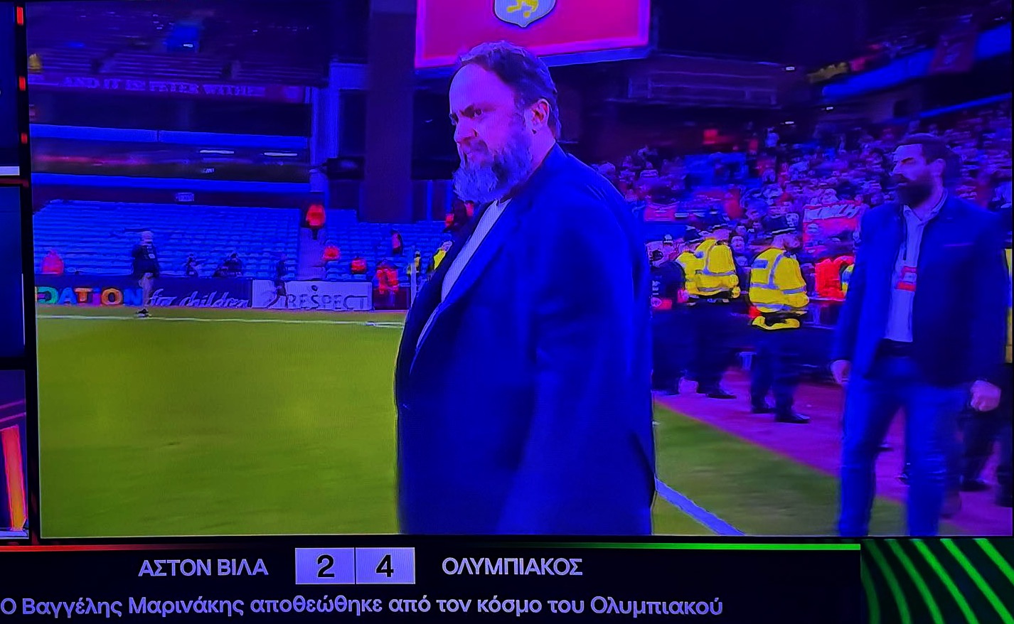 Δακρυσμένος ο Μαρινάκης αποθεώθηκε απο τον κόσμο του Ολυμπιακού μετά το 2-4 επι της Βίλα