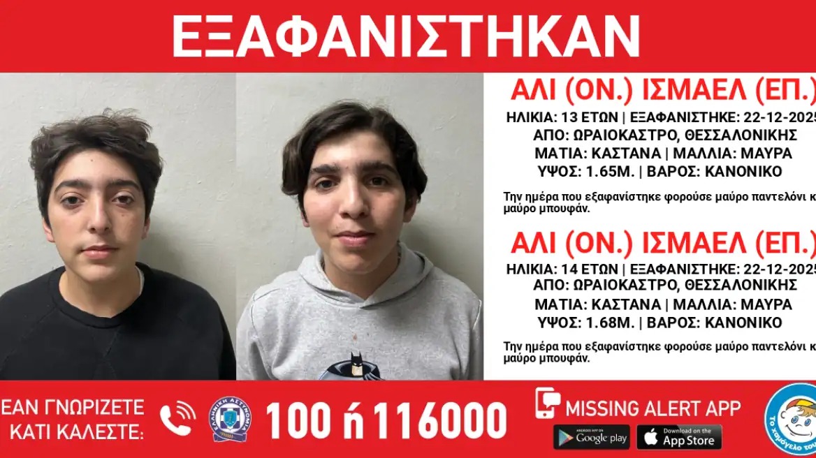 Συναγερμός στο Ωραιόκαστρο- Εξαφανίστηκαν ένας 13χρονος κι ένας 14χρονος