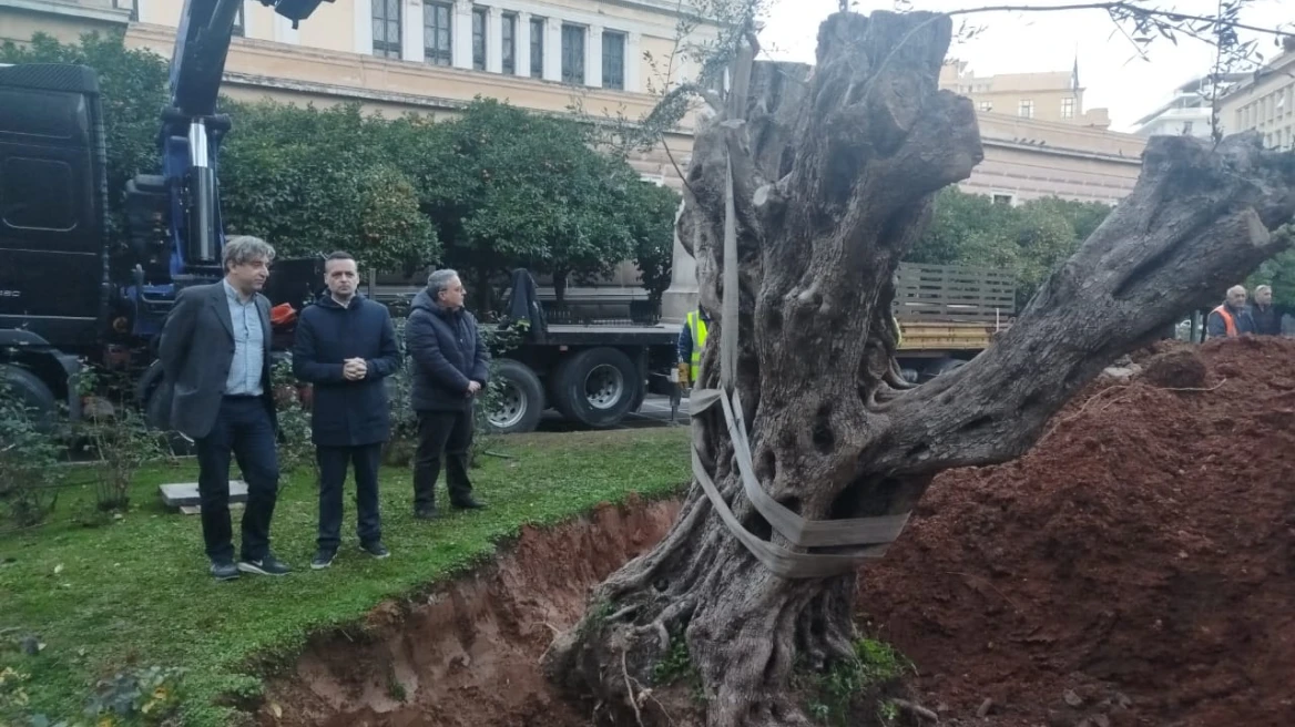 O Δούκας φύτεψε ελιά 700 ετών στον περίβολο της Παλαιάς Βουλής – Δείτε φωτογραφίες