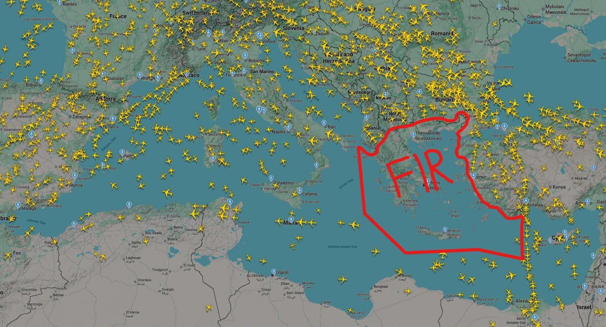 Δείτε τον χάρτη – Αυτός είναι ΤΩΡΑ ο Ελληνικός εναέριος χώρος μετά το γενικό black-out στις συχνότητες επικοινωνίας