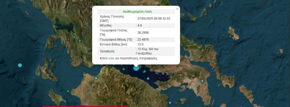 Σεισμός μεγέθους 4,8 Ρίχτερ ταρακούνησε τη νύχτα τον κορινθιακό κόλπο, ενώ έγινε αισθητός και…