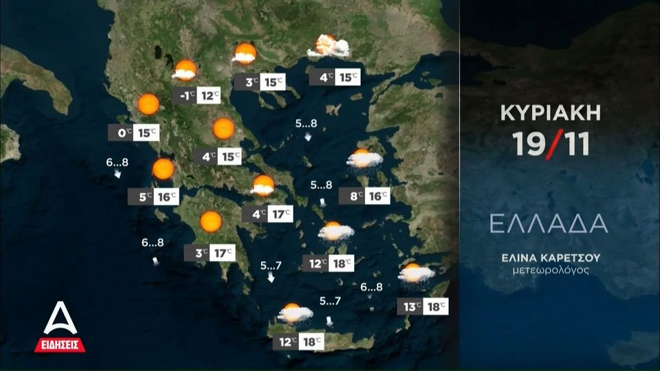Όλα τα τελευταία δεδομένα για τον καιρό της Κυριακής δίνει η μετεωρολόγος Ελίνα Καρέτσου.…