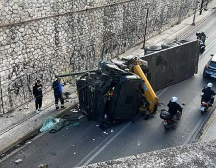 Νέα Φιλαδέλφεια ΤΩΡΑ – Γερανοφόρο έπεσε σε κολόνα και ντελαπάρισε – Στο ένα ρεύμα η κυκλοφορία