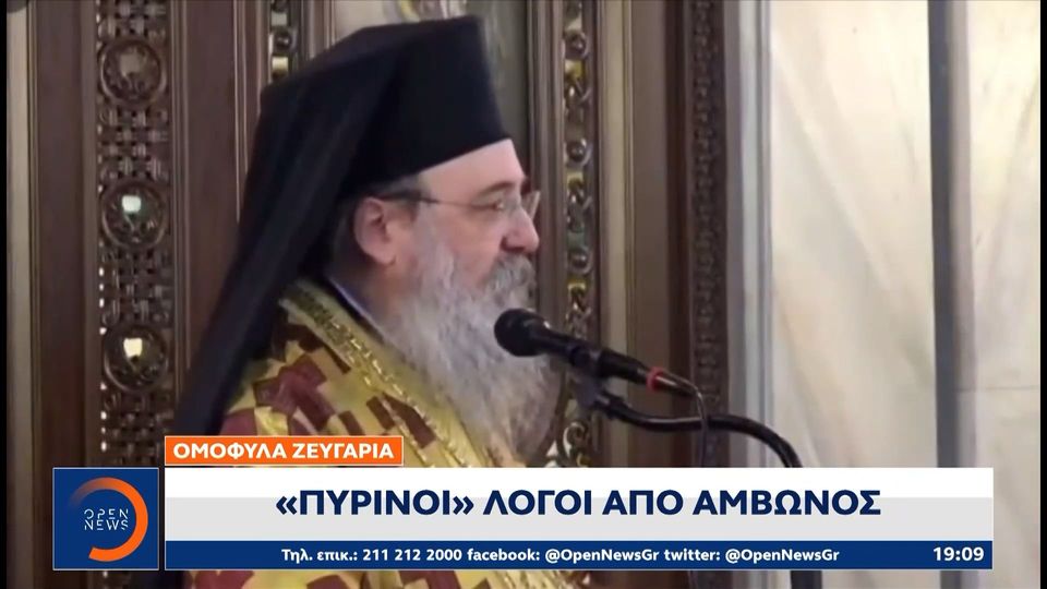 Στα «όπλα» οι Μητροπολίτες – «Πύρινοι» λόγοι από Άμβωνος για τα Ομόφυλα ζευγάρια
