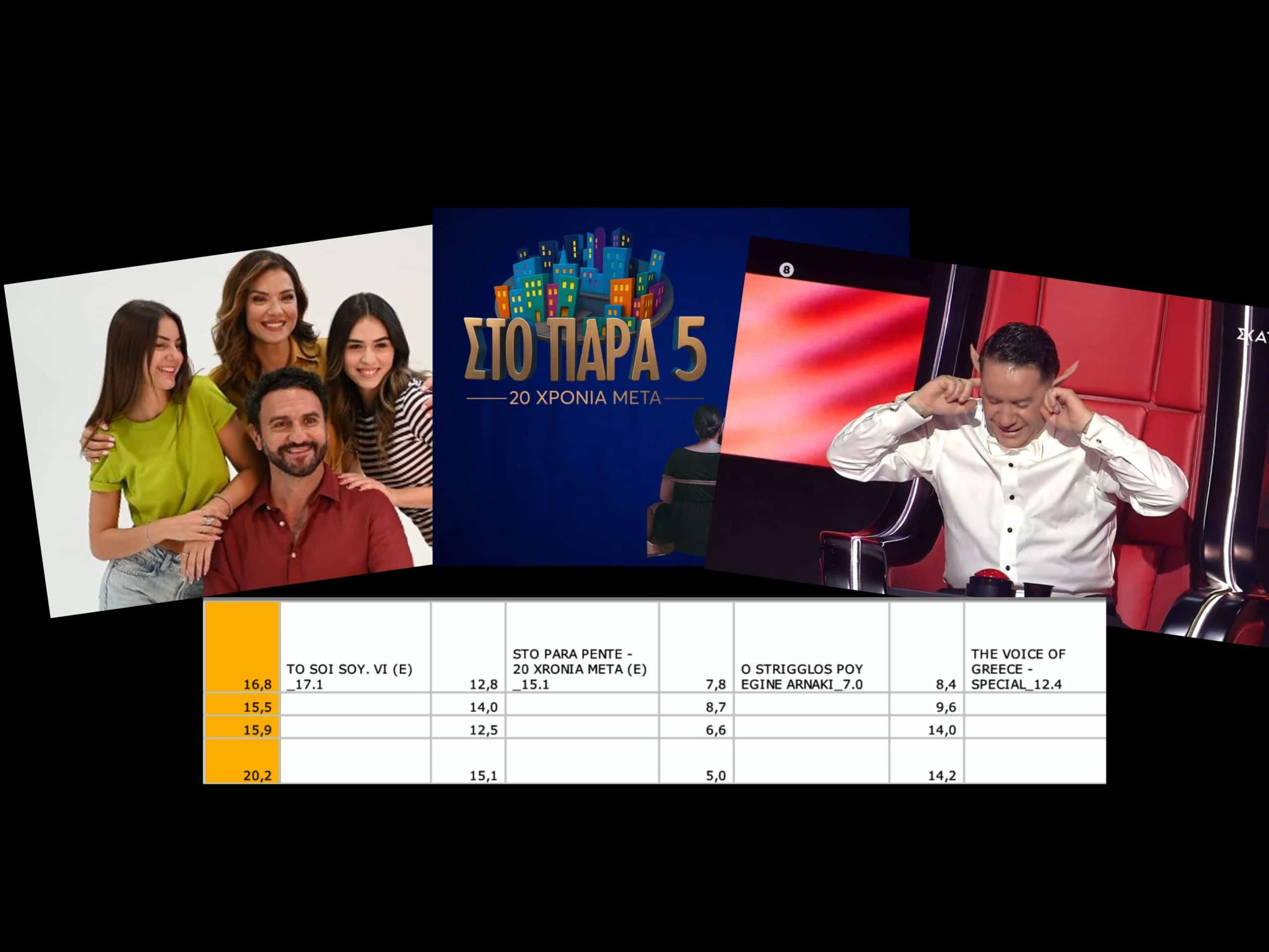 H πρωτοχρονιάτικη μάχη του Prime Time…. πρωτιά πήρε το “Σόϊ” σε επανάληψη – Τσάμπα τα 90.000 ευρώ για το “The Voice”