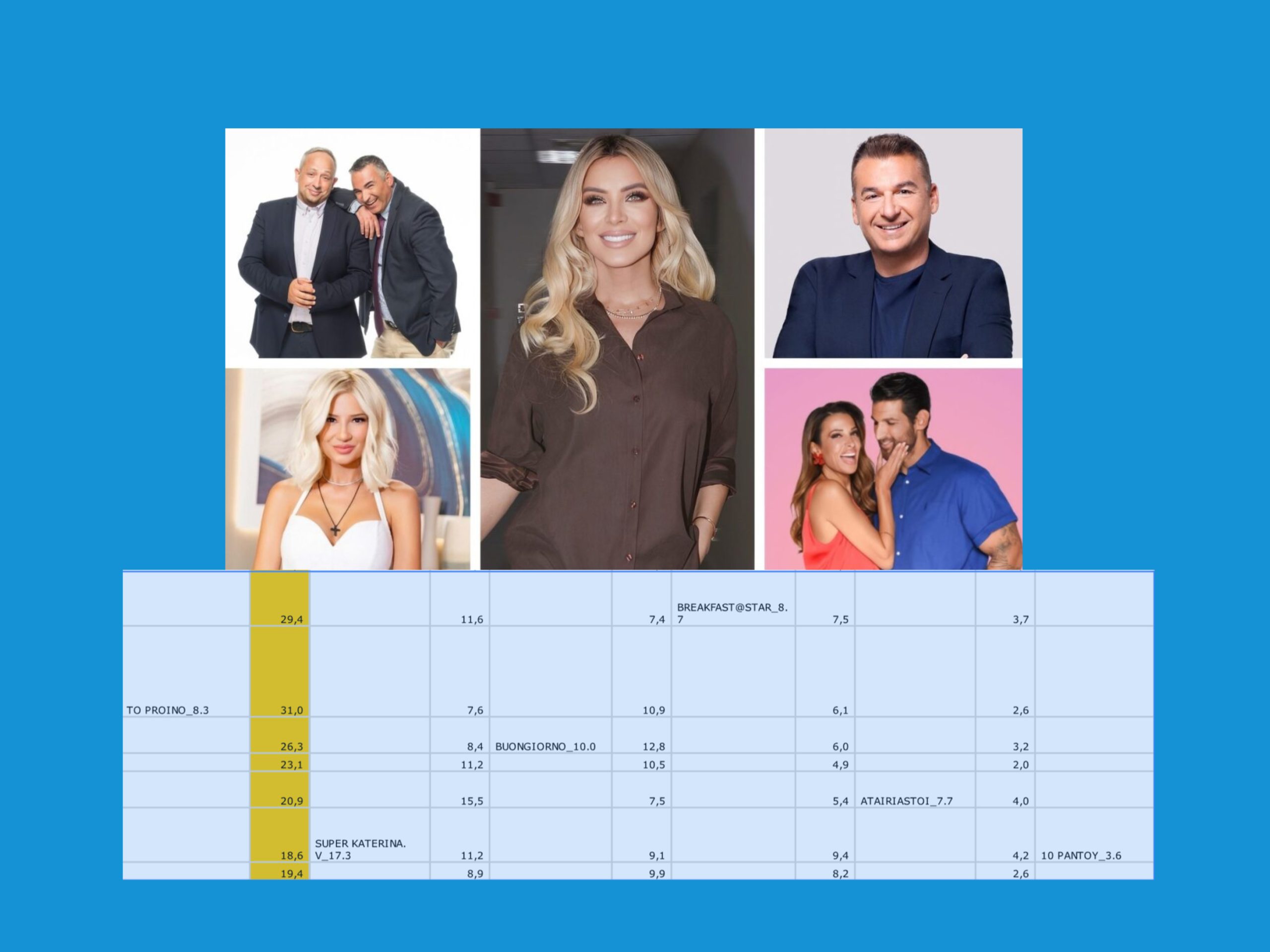 Τηλεθέαση Πρωϊνάδικων – Πέφτει επικίνδυνα η Τσολάκη… πρώτος οριακά ο Μάνεσης στον “πάτο” το Open