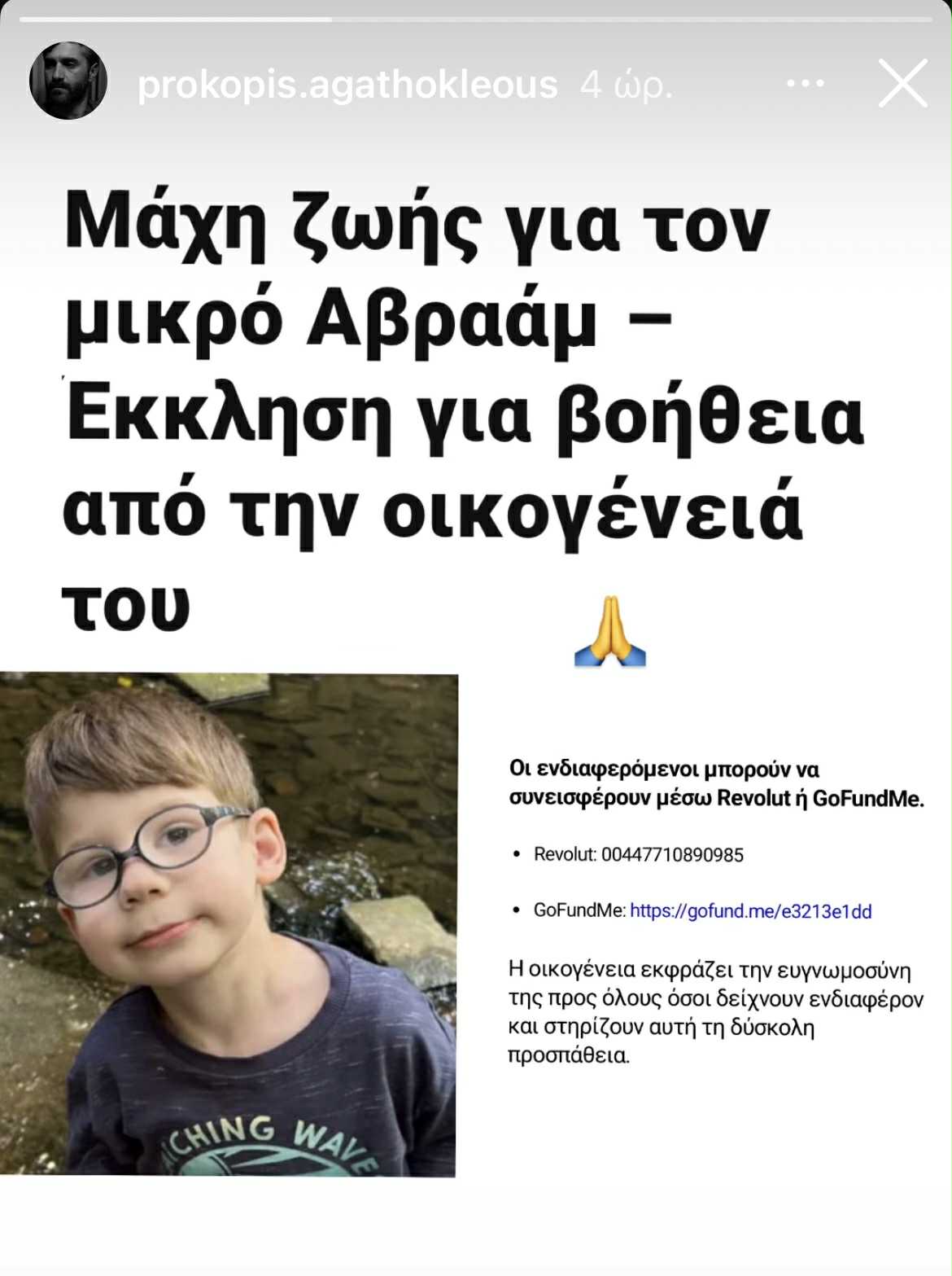 Έκκληση για βοήθεια από τον Προκόπη Αγαθοκλέους για το μικρό παιδί που παλεύει για να ζήσει