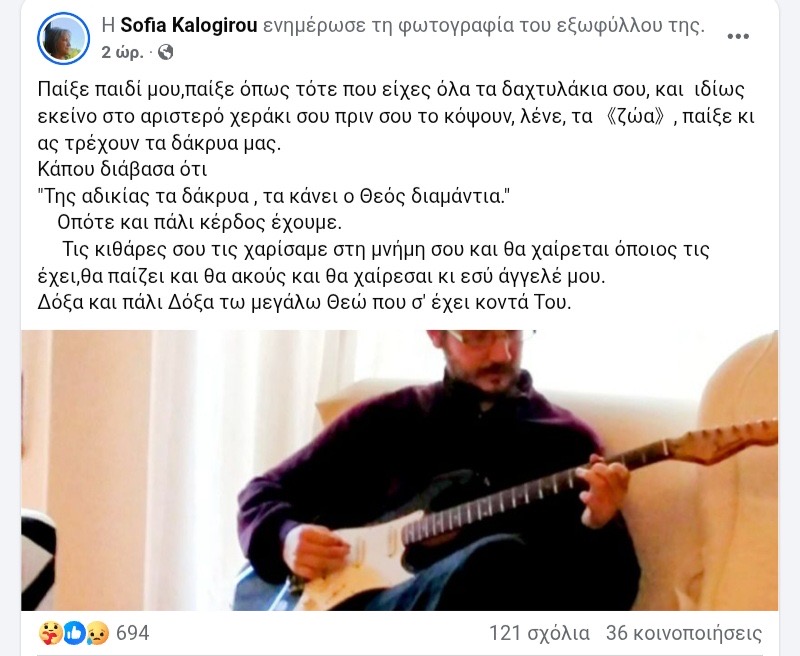 Η νέα ανάρτηση της μητέρας του Καλογήρου – «Τέτοιες μέρες του ’85 σε κράτησα στην αγκαλιά μου, τώρα είσαι στην αγκαλιά της Παναγίας»