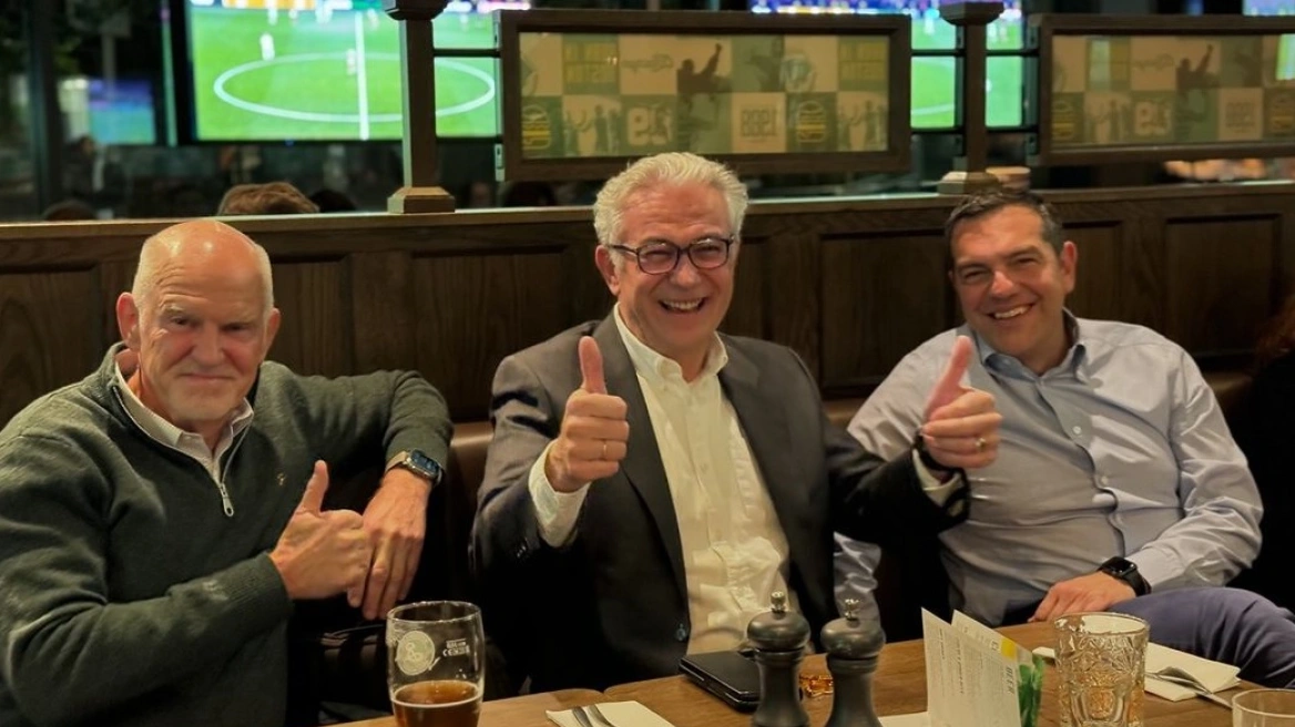 Ο Τσίπρας είδε τον τελικό του Conference League με τον Ρουσόπουλο και τον Παπανδρέου