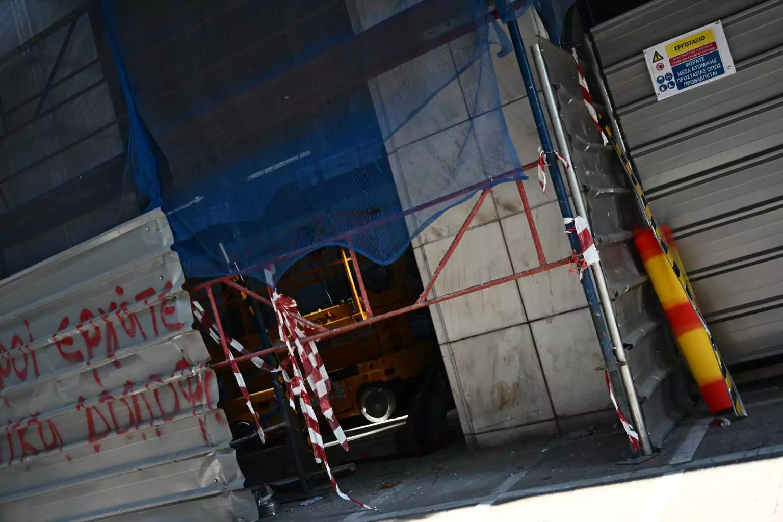 Στο μικροσκόπιο των Αρχών τα υπολείμματα της βόμβας έξω από το υπουργείο Εργασίας