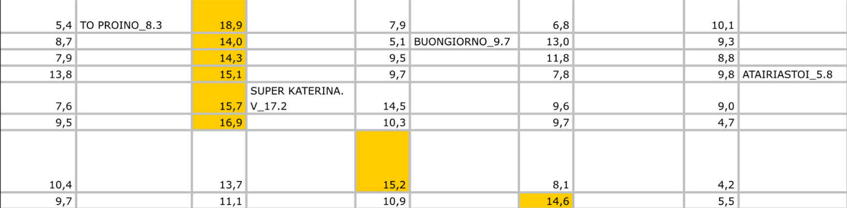 Δείτε αναλυτικά τους μέσους όρους παρακάτω: