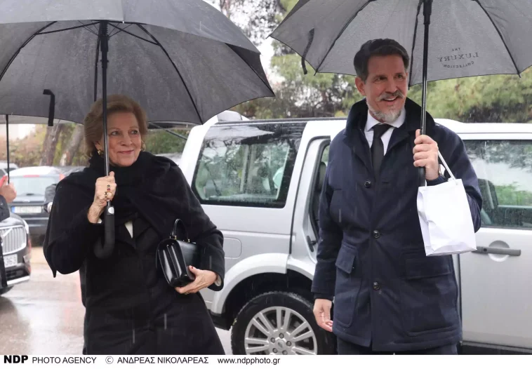 Υπό βροχή, η Άννα Μαρία, τα πέντε παιδιά του – Παύλος, Νικόλαος, Φίλιππος, Αλεξία και Θεοδώρα – η αδελφή του του τέως βασιλιά Κωνσταντίνου, Βασίλισσα Σοφία της Ισπανίας καταγράφηκαν από τον φακό κατά την είσοδό τους στο εστιατόριο, λίγο μετά τις 13:30 και αφού ολοκληρώθηκε το μνημόσυνο στο Τατόι.