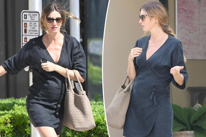 Η Ζιζέλ φορούσε ένα κοντό μαύρο φόρεμα που έδειχνε τη φουσκωμένη κοιλιά της, είχε πιάσει τα μαλλιά της σε μια πλεξούδα και φορούσε επίσης γυαλιά ηλίου. Φάνηκε να βιάζεται, καθώς περπατούσε γρήγορα στον δρόμο.