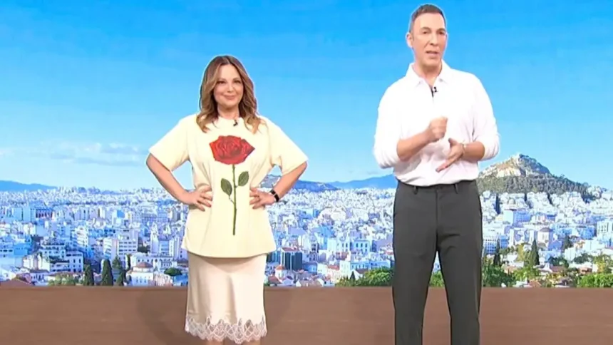 Ο Θανάσης Αναγνωστόπουλος, στην έναρξη, ζήτησε συγγνώμη από τους τηλεθεατές γι’ αυτή τη μικρή καθυστέρηση, με τη Νάνσυ Ζαμπέτογλου να αντιδρά.