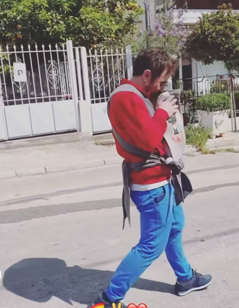 - Δείτε την πρώτη εμφάνιση με τη κόρη του με τον ηθοποιό να φοράει μάρσιππο και να προχωρά χαρούμενος και ευτυχής ενώ η σύζυγός του τον φωτογραφίζει. Στη συνέχεια έγινε το αντίθετο αφού εκείνος τραβούσε βίντεο την Αγοραστή που πήγαινε βόλτα τον σκύλος του.