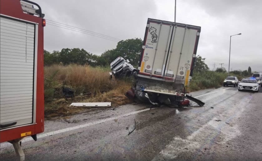 Άνδρες της 7ης ΕΜΑΚ και πυροσβέστες επιχειρούν στο σημείο για τον απεγκλωβισμό των δυο γυναικών, ενώ τραυματίας είναι και ο οδηγός της νταλίκας.