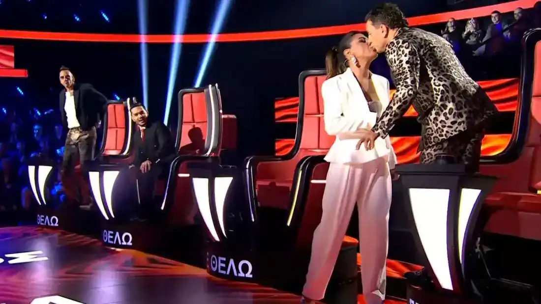 Το φιλί Παπαρίζου σε Μαζωνάκη που «πάγωσε» το πλατό του “The Voice ” (Βίντεο)