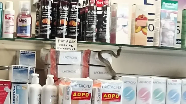 Αναστάτωση προκλήθηκε σε φαρμακείο στην πόλη των Φιλιατών στη Θεσπρωτία. Οι υπάλληλοι εντόπισαν ένα φίδι να έχει τρυπώσει στα ράφια του καταστήματος, ανάμεσα σε φαρμακευτικά και παραφαρμακευτικά προϊόντα.