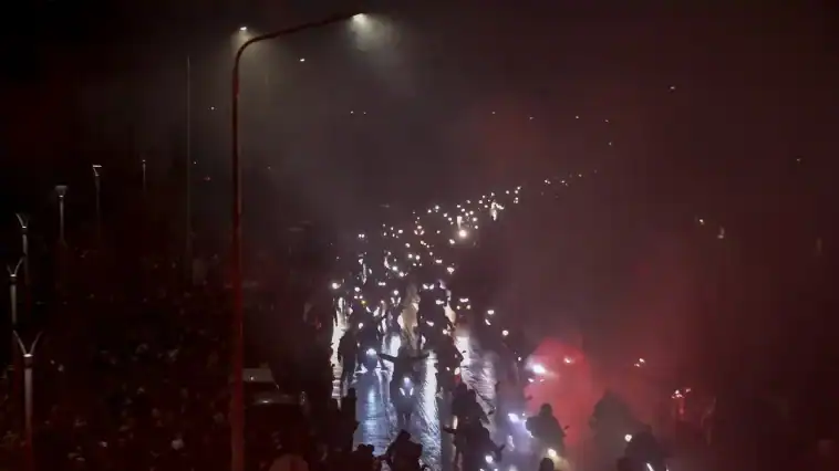 Τη στιγμή που ο εικονολήπτης προσπάθησε να στρέψει την κάμερα προς το δρόμο για να δείξει μακρινή εικόνα της πομπής, μαυροφορεμένοι νεαροί έτρεξαν προς το τηλεοπτικό συνεργείο, φωνάζοντας.