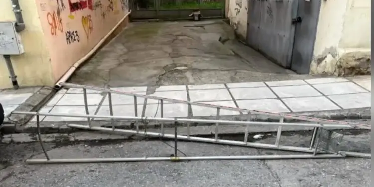 Όπως φαίνεται στην φωτογραφία «έξυπνος» που κάρφωσε την σκάλα στο οδόστρωμα, έβαλε και μια βέργα γύρω από την οποία ασφάλισε με λουκέτο τη σκάλα!