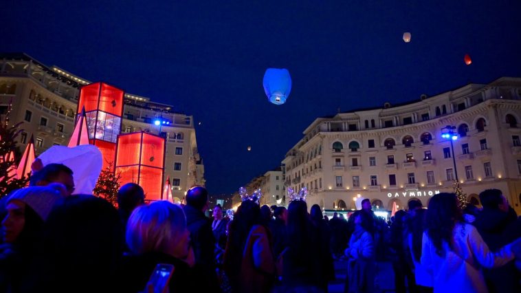 Εκατοντάδες φαναράκια υψώθηκαν μετά τις 6 το απόγευμα στον ουρανό της Θεσσαλονίκης, πάνω από τη στολισμένη πλατεία Αριστοτέλους.Πρόκειται για το «Fanarakia Christmas Event», που διοργάνωσε για δεύτερη συνεχόμενη χρονιά ο Εμπορικός Σύλλογος Θεσσαλονίκης.
