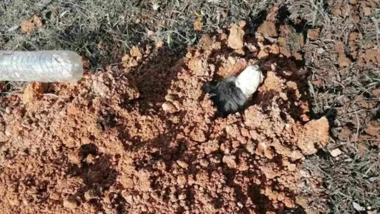 Οι διαδικασίες έγιναν τάχιστα, το ζώο ελευθερώθηκε και οδηγήθηκε με ευθύνη του διαδημοτικού συνδέσμου σε κτηνιατρική κλινική της περιοχής προκειμένου να γίνουν οι απαραίτητες εξετάσεις. Αυτή τη στιγμή το ζώο είναι καλά στην υγεία του και αναμένουμε τα αποτελέσματα των εργαστηριακών εξετάσεων. Ο συνάδελφος είδε το μισό σώμα του ζώου, το κεφάλι και λίγο από τον κορμό να εξέχουν από το έδαφος και το υπόλοιπο σώμα να είναι θαμμένο. Αμέσως αντιλήφθηκε ότι κάτι συμβαίνει, ότι πιθανόν το ζώο να είναι τραυματισμένο. Ο φερόμενος ως ιδιοκτήτης του ζώου δεν βρισκόταν στο σημείο».