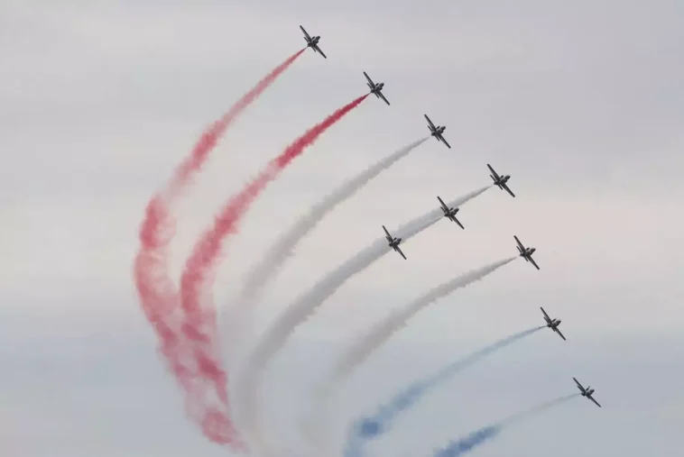 Η διέλευση των μεταγωγικών αεροσκαφών C-130 και C-27 με τον επετειακό διάκοσμο τους και οι διελεύσεις σε σχηματισμό όλων των μαχητικών της ΠΑ της χώρας, συνοδεύτηκαν από χειροκροτήματα και χιλιάδες φωτογραφικά πλάνα και βίντεο.