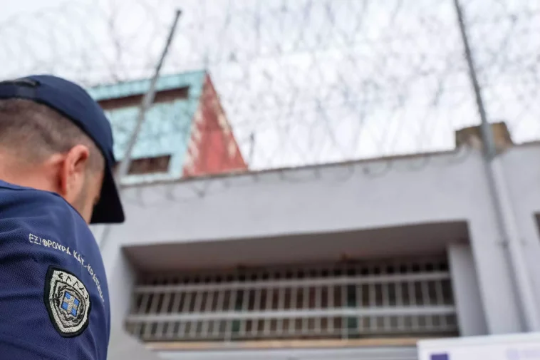 Μετά την καταδίκη του από το Τριμελές Εφετείο Κακουργημάτων Θεσσαλονίκης στις φυλακές οδηγούνται σιδηροδέσμιοι δύο σωφρονιστικοί υπάλληλοι.
