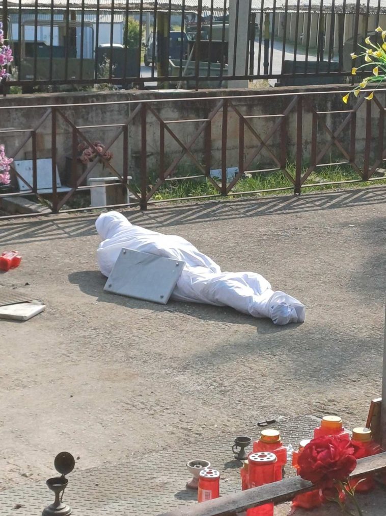 Οταν έφτασαν στο σημείο δίπλα στο χώρο απόθεσης των οστών εναπόθεσαν τη σορό στο έδαφος και περίμεναν ιερέα να τελέσει την δέηση.