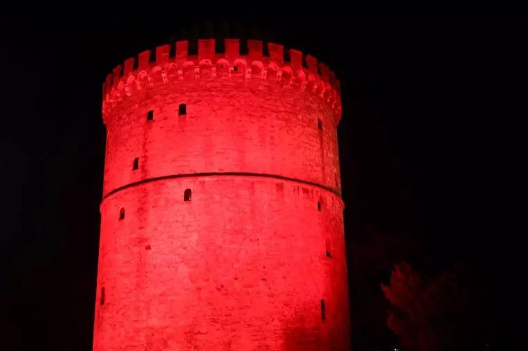 Ο Λευκός Πύργος φωταγωγήθηκε κόκκινος λόγω της Παγκόσμιας Ημέρας Θαλασσαιμίας, όπως είναι ο επίσημος όρος για τη Μεσογειακή Αναιμία.