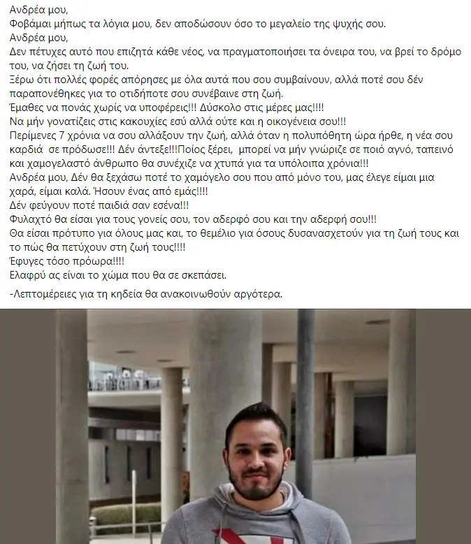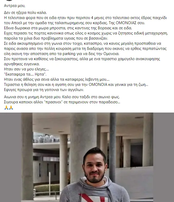 Από την ώρα που έγινε γνωστή η τραγική είδηση, φίλοι, συγγενείς, αλλά και η επίσημη Ομόνοια -η αγαπημένη του ομάδα – αποχαιρέτησαν με σπαρακτικές αναρτήσεις τον Ανδρέα.