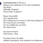 «Η LEO μου. Σήμερα, μου παρέδωσε το πιο ιερό της βλέμμα. Και έφυγε. Αθόρυβα. Τρυφερά. Όπως έζησε 15 χρόνια! Έφυγε όπως ήρθε! Στην αγκαλιά μου! Με το βλέμμα μου να είναι το τελευταίο πράγμα που είδε. Με τη φωνή μου για παλμό, και την καρδιά μου για πύλη. Δεν έφυγε μόνη. Δεν ήμουν έτοιμος. Αλλά εκείνη… ήταν. Και έφυγε όπως της άξιζε: καθαρή, αγαπημένη, στην αγκαλιά του ανθρώπου της. Για λίγο ακόμα μαζί της. Έτσι… ανάμεσα στους κόσμους. Εκεί που για λίγο η αγάπη και ο αποχωρισμός είναι το ίδιο πράγμα. Το ταξίδι στο Φως ξεκινάει! Σε ευχαριστώ, LEO μου. Για όλα» γράφει.