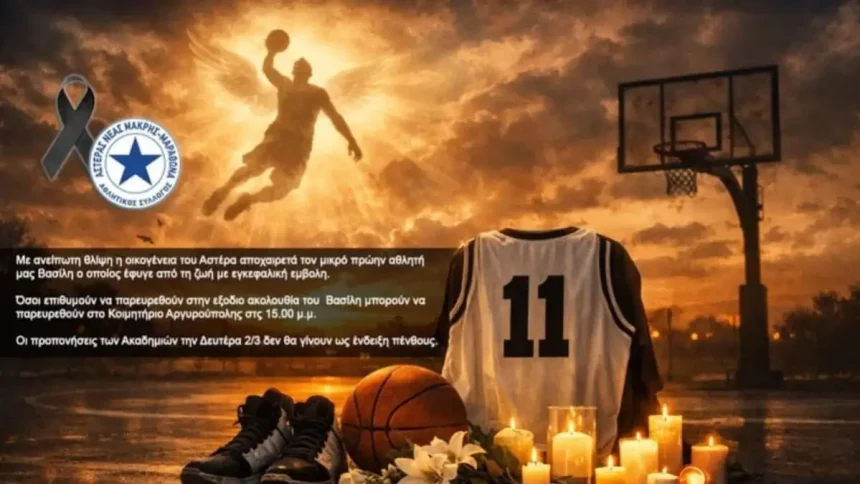 Βαρύ το πένθος στη Νέα Μάκρη από την είδηση του ξαφνικού θανάτου του 12χρονου Βασίλη, πρώην αθλητή του Αστέρα.