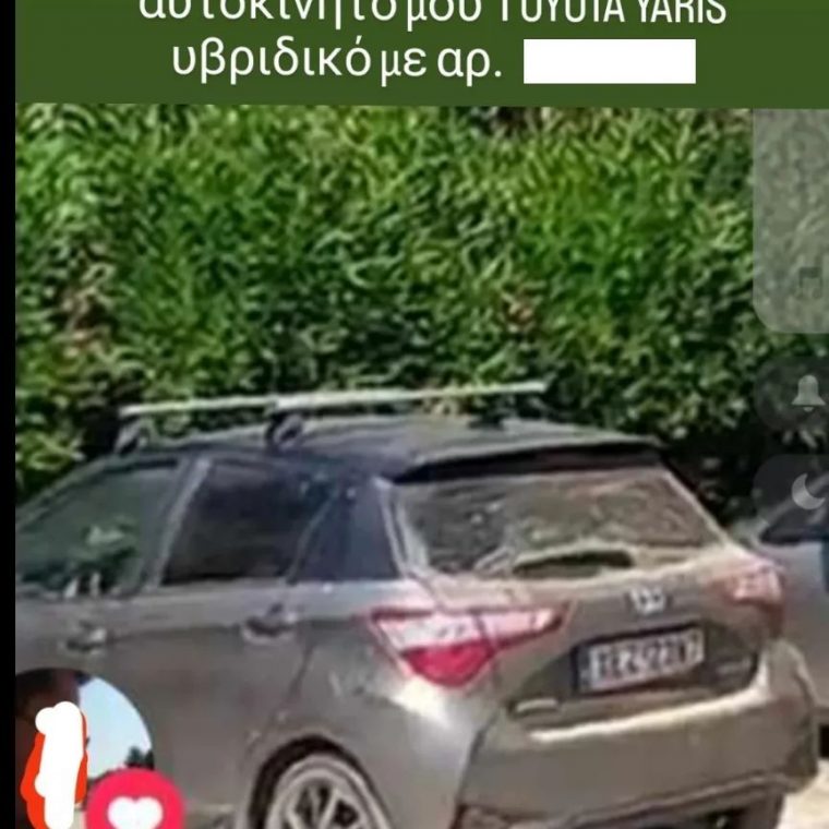 - «Εχθές βράδυ μου έκλεψαν το αυτοκίνητο μου toyota yaris υβριδικό με αρ. ΧΕΖ 2@@@ Το είχα παρκάρει στην οδό ανεξαρτησίας έξω από το 1ο γυμνάσιο Αργυρούπολης. Αν τυχόν κάποιος γνωρίζει οτιδήποτε παρακαλώ να επικοινωνήσει μαζί μου Ευχαριστώ». Την ανάρτησή της συνόδευε με φωτογραφία του αυτοκινήτου της που όπως αποκάλυψε και η ίδια ήταν παρκαρισμένο στη γειτονιά όπου μένει. Μόνο που όταν πήγε να το βρει το πρωί, αυτό έλειπε από τη θέση του. Φίλοι και γνωστοί, ανάμεσά τους και η ηθοποιός Νίκη Παλληκαράκη έδειξαν να συμπάσχουν μαζί της, εκδηλώνοντας τη συμπαράστασή τους.